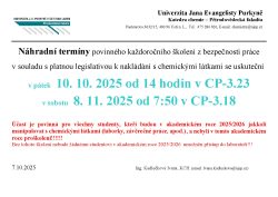 Účast je povinná pro všechny studenty, kteří budou v akademickém roce 2025/2026 jakkoli manipulovat s chemickými látkami (laborky, závěrečné práce, apod.)!