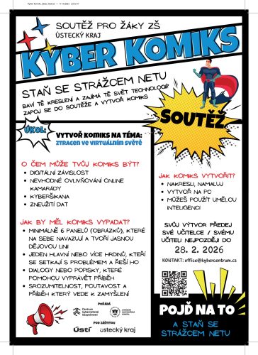 Nejlepší komiksy budou oceněny během finále Kybersoutěže 23. dubna 2026 a jejich autoři získají věcné ceny. Podrobné informace o pravidlech a termínech najdete v přiloženém letáku.
