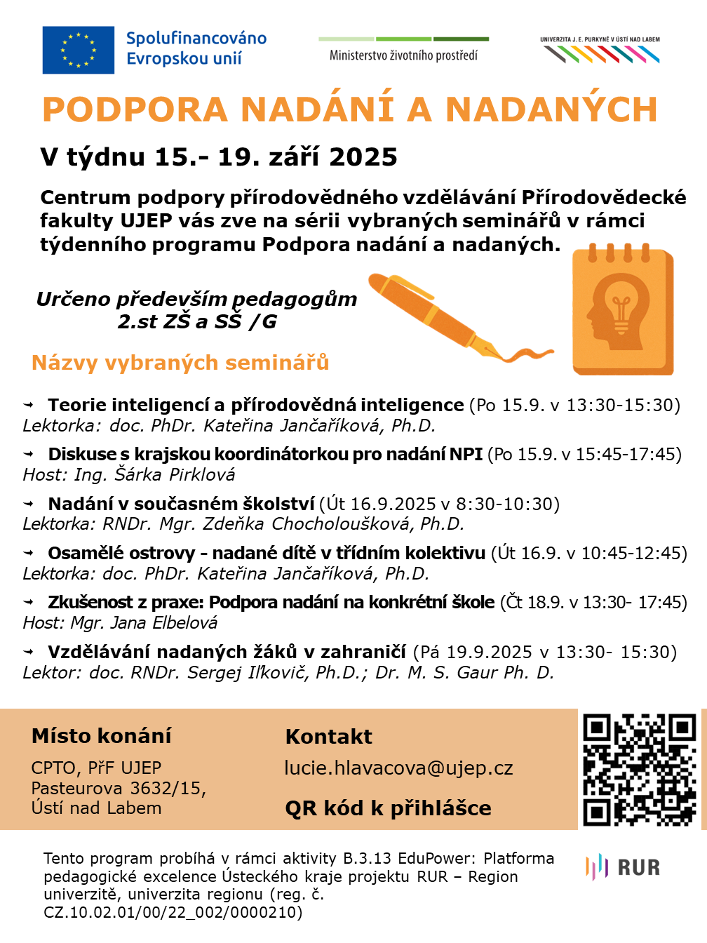 Program probíhá v rámci aktivity B.3.13 EduPower: Platforma pedagogické excelence Ústeckého kraje projektu RUR – Region univerzitě, univerzita regionu reg. č. CZ.10.02.01/00/22_002/0000210.